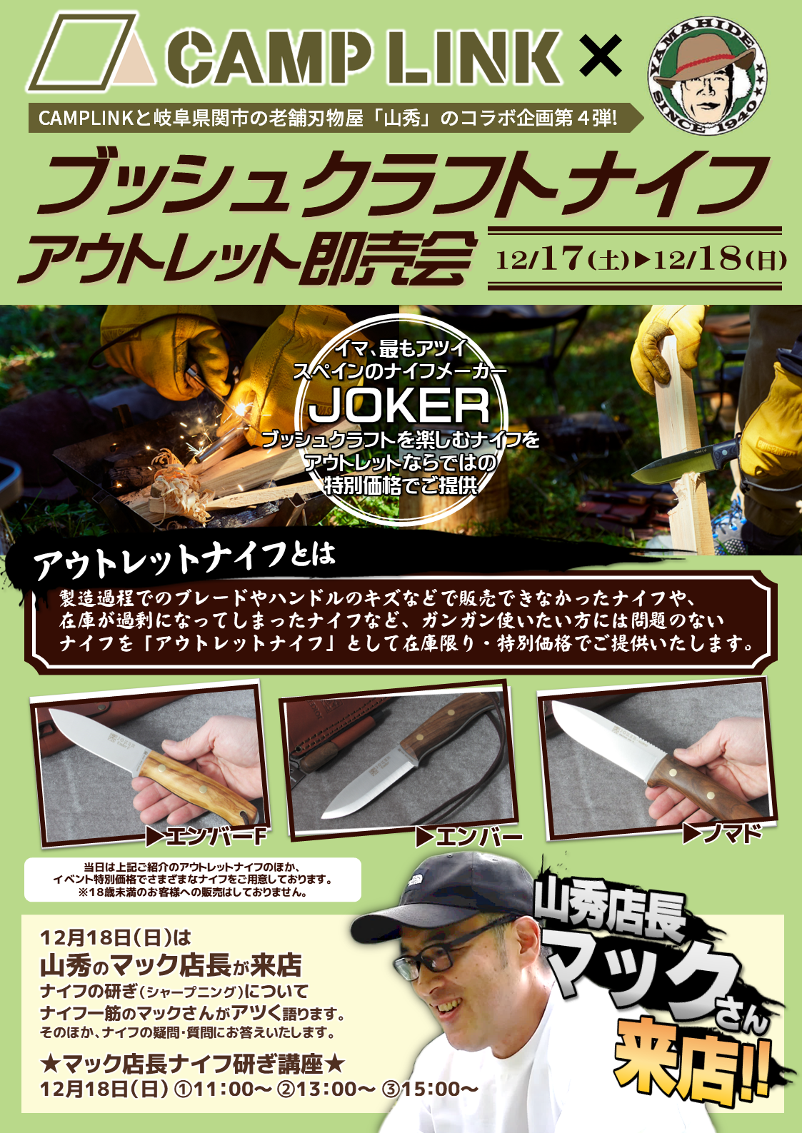 12月17日・18日「CAMPLINK×山秀ナイフイベント」のお知らせ