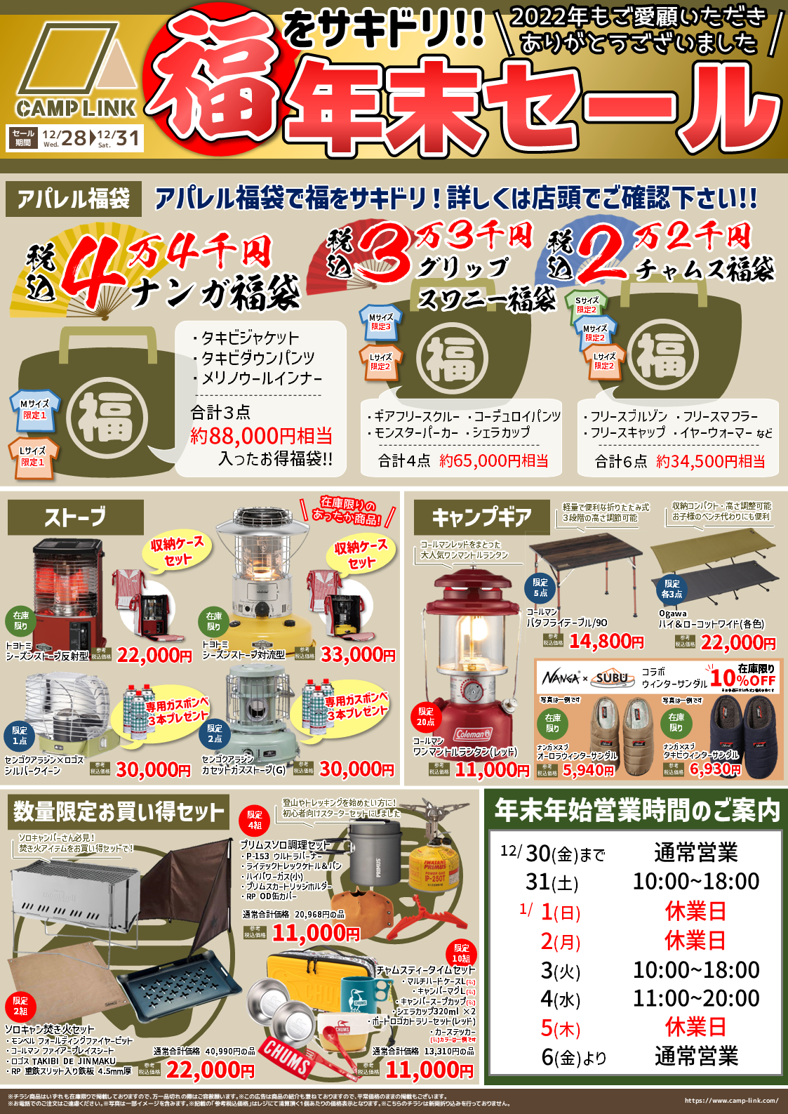 キャンプリンク岐阜店から残り僅かとなった2022年もお得に!楽しく!お買い物できる年末セールのお知らせです。