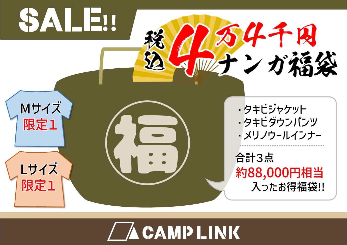 目玉商品は8万8千円相当が入ったナンガ福袋(税込4万4千円)ですね。
