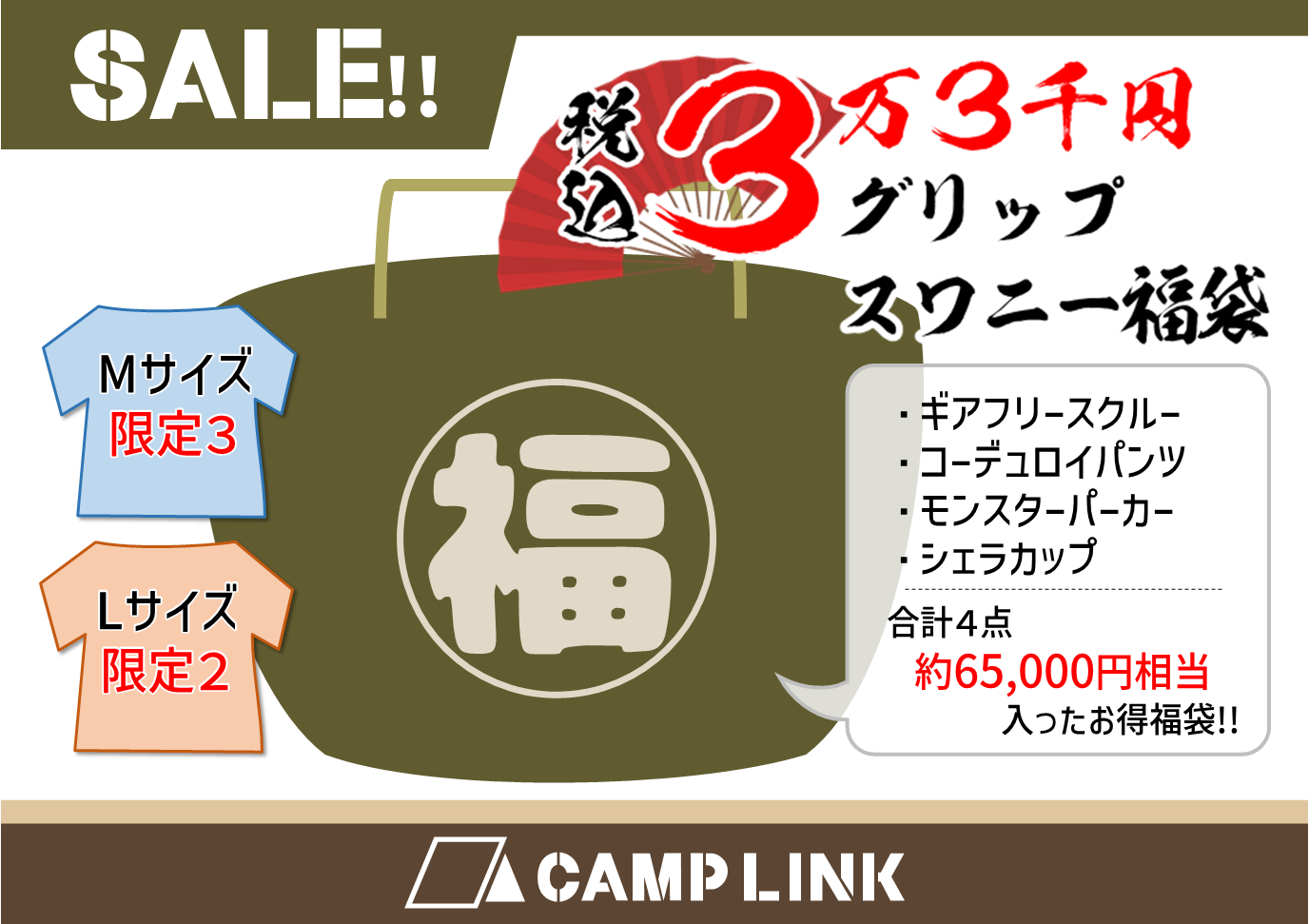 グリップスワニーの福袋や、チャムスのアパレル小物が入った福袋もありますのでぜひチェックしてください(^▽^)/