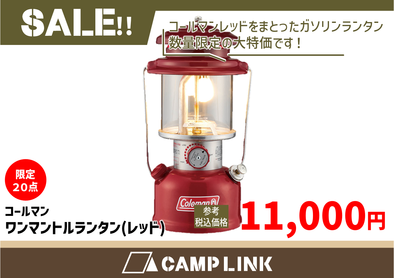 キャンプギアの目玉はコールマンの「ワンマントルランタン レッド」が税込1万1千円の超大特価!