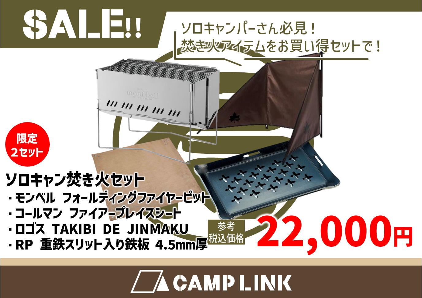 モンベルの二次燃焼が楽しめる焚火台と、焚き火陣幕、焚き火台シート、調理鉄板をお買い得なセットにしました!