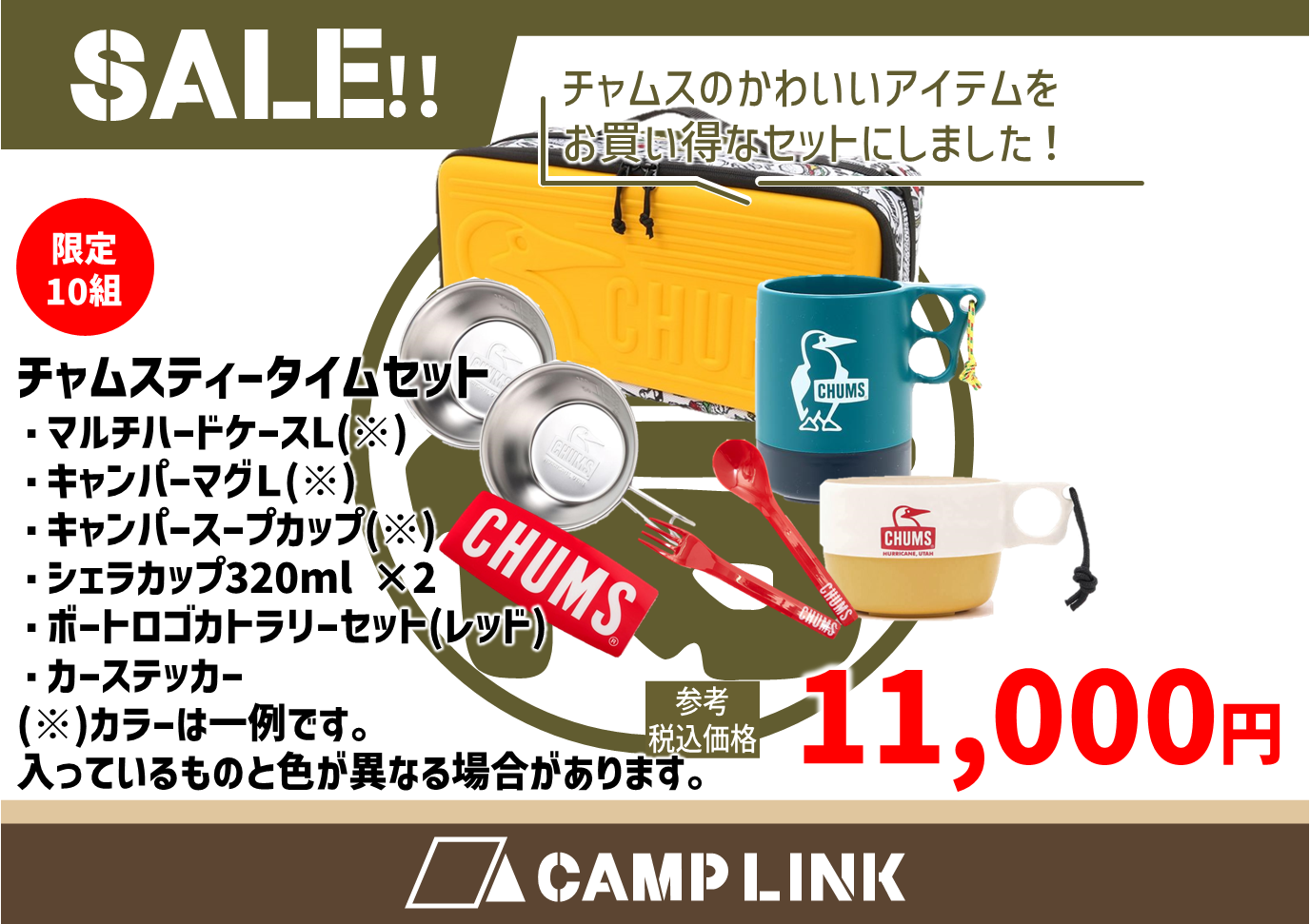 チャムスのかわいいアイテムを集めたセットです。かわいいブービーバードのギアでおしゃれキャンプに一歩近づけるセットです