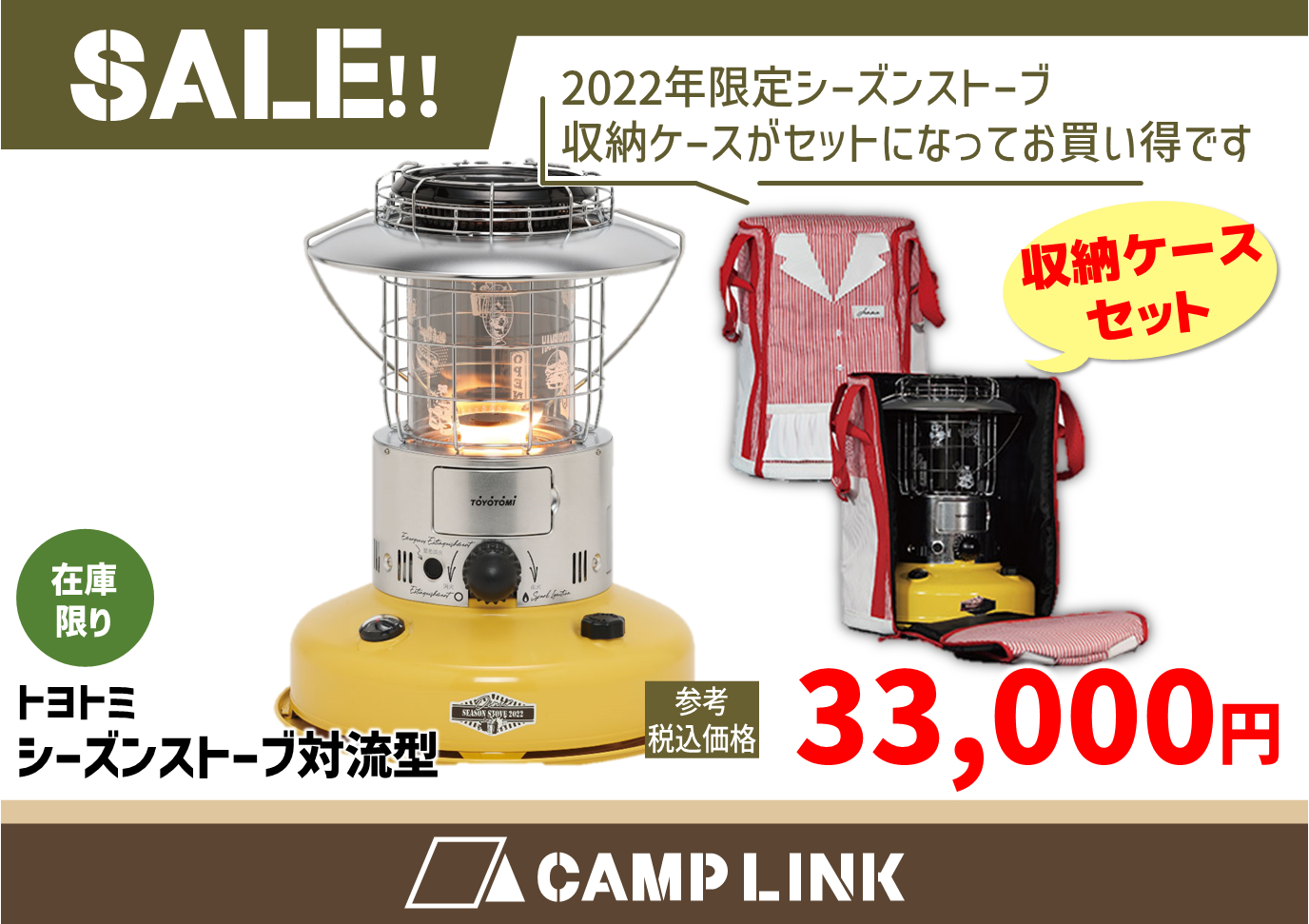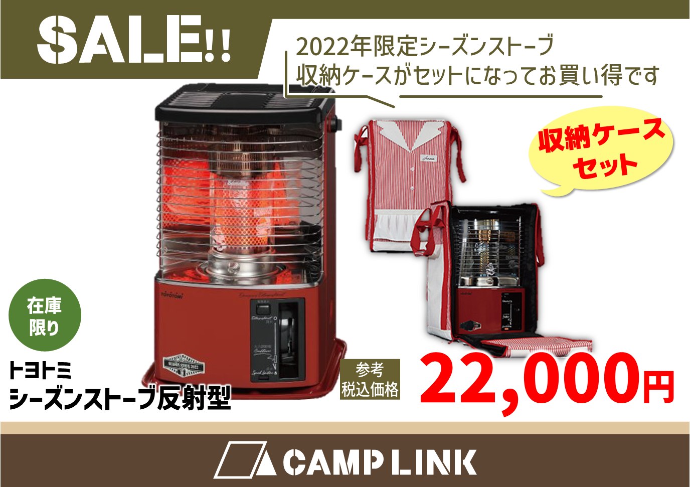 トヨトミのシーズンストーブが超お買い得です!2022年限定カラーとして売り出した反射型ストーブ(ケチャップレッド)と、対流型ストーブ(マスタードイエロー)がそれぞれ、2万2千円、3万3千円とお買い得です。特別仕様の収納ケースもセットになってます!