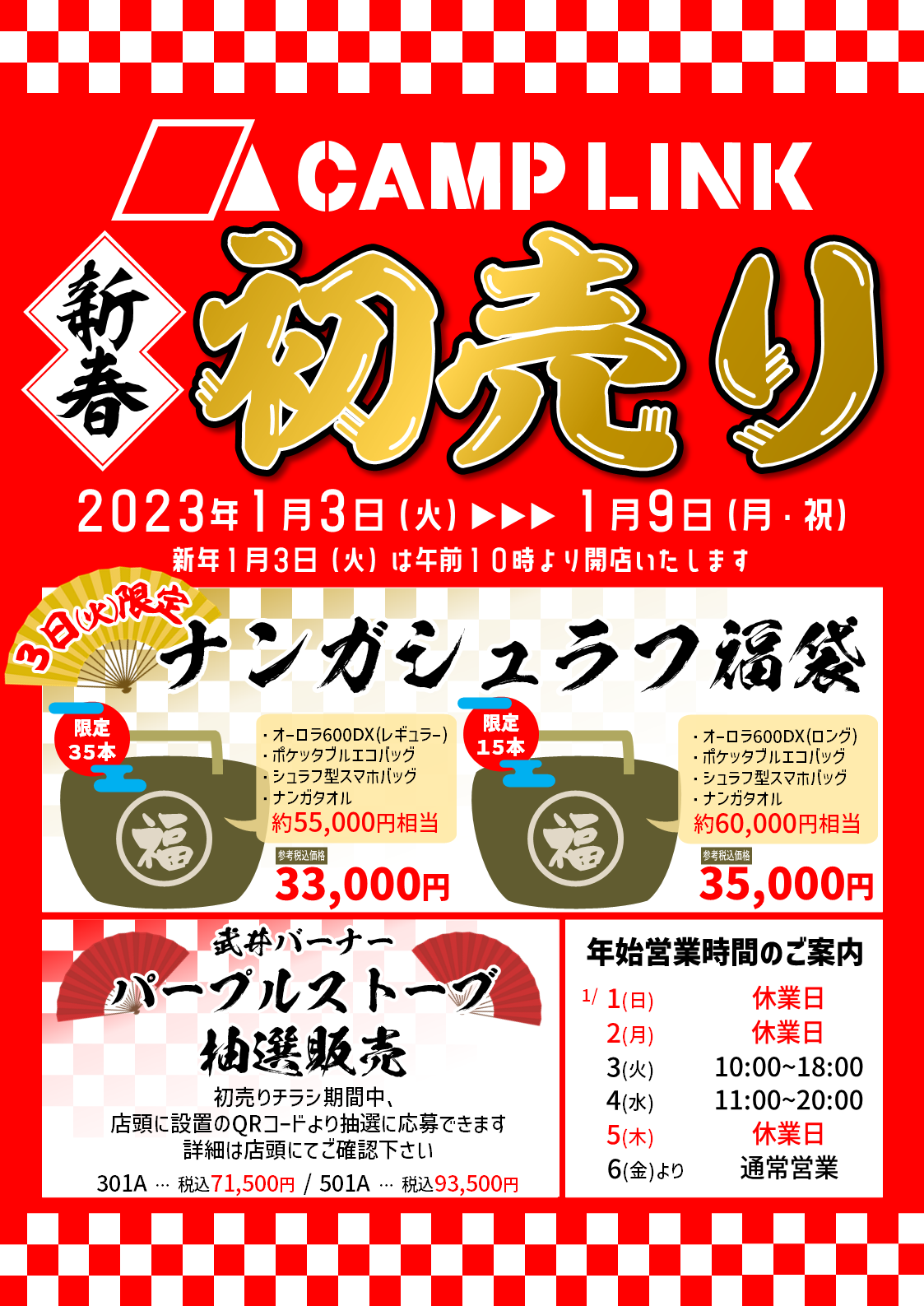 1月3日(火)10時スタート【CAMPLINK 新春初売り】のご案内です。