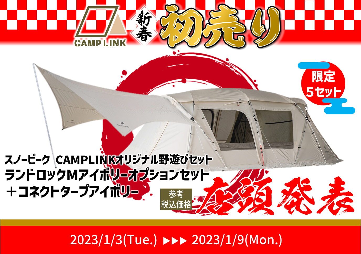 また、2022秋の雪峰祭で話題になった「ランドロックMアイボリー」と「コネクトタープアイボリー」がキャンプリンク限定野遊びセットとして販売いたします。価格は店頭にてご確認下さい!