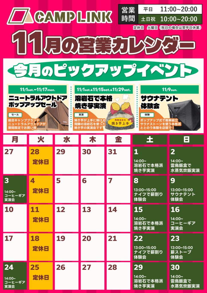 2025年11月の営業カレンダー・イベントをご案内いたします。