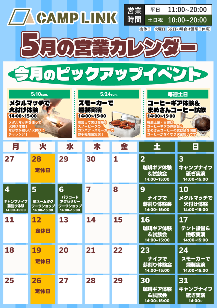 2026年5月の営業カレンダー・イベントをご案内いたします